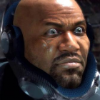 beneath the brown face of anderson, lies a volus piloting a human body